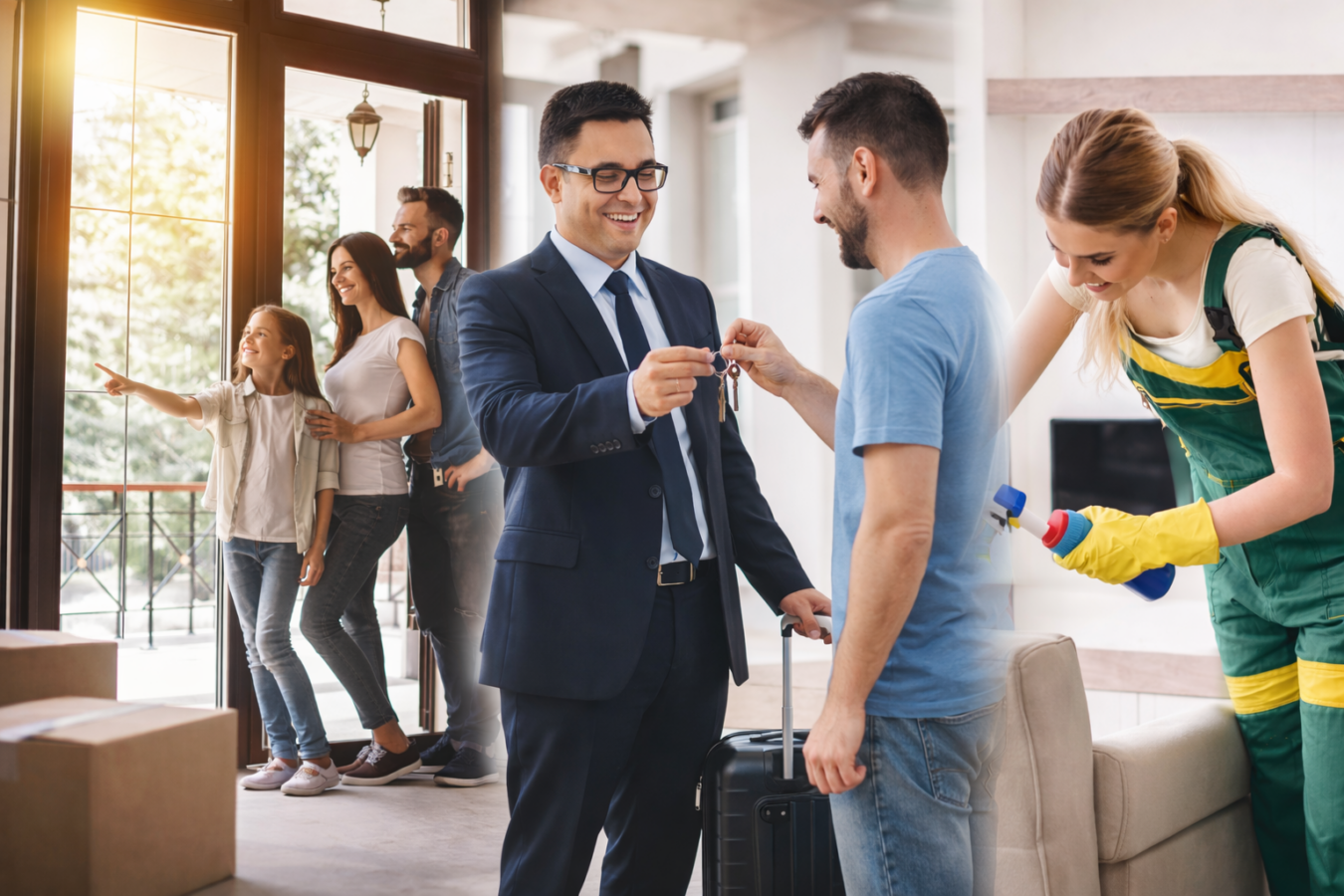 tanto para estancias vacacionales como para alojamiento de empleados. Nos ocupamos de todo el proceso: gestión de reservas, coordinación de entradas y salidas, atención al huésped/inquilino, limpieza y lavandería, reposiciones, incidencias y mantenimiento.